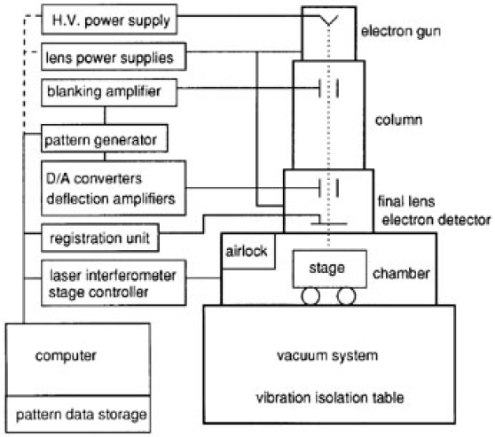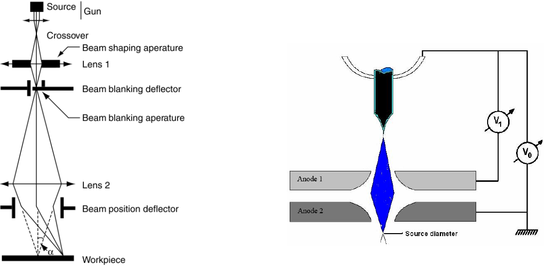 Electron column은 EBL의 심장과도 같다. Round-beam EL instrument의 단순화 된 ray diagram은 아래와 같다.