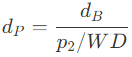 마찬가지로, electron probe($d_P$)에 대한 $d_B$에서의 de-magnification의 정도는 아래와 같다.