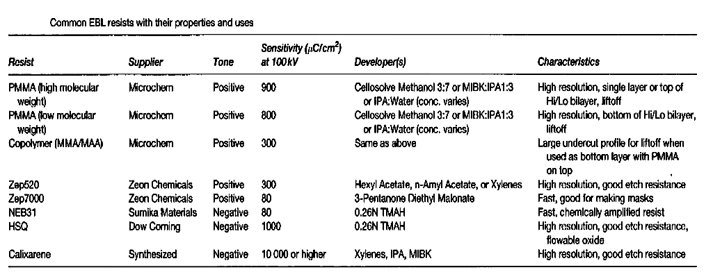 Photoresist는 특정 파장 영역의 가시광선(특정 에너지의 광자)에 민감한 polymer chain이며, 해당 파장의 빛이 조사 될 경우 polymer의 물리적 구조가 변화된다. E-beam resist는 광자가 아닌 전자에 민감한 polymer이다. 이 ER에는 크게 두 가지 종류가 있다. 바로 positive와 negative이다.