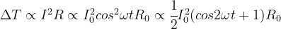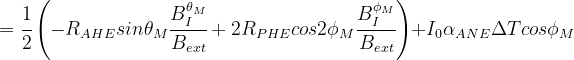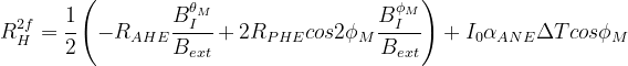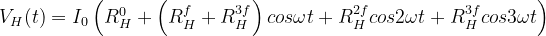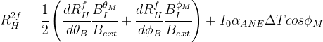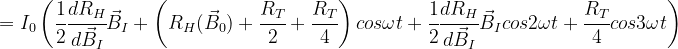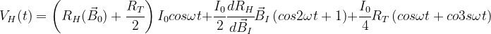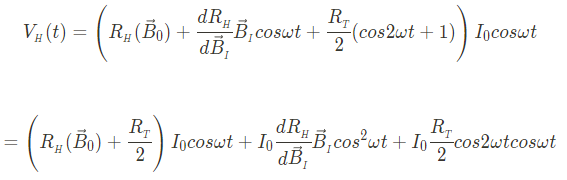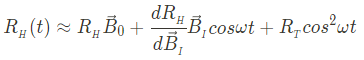 하지만 실제 환경에서는, 열텀 $ R_{_T}cos2\omega t $ 가 자화의 equilibrium position에 영향을 끼쳐 Hall resistance는 아래와 같이 변한다.