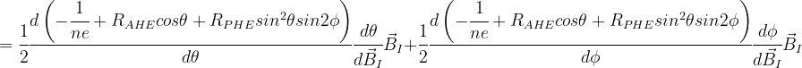 위에서 구한 구좌표계에서의 DL field와 FL field를 보면, DL field는 $\theta$축과 평행한 방향으로 magnetization에 작용하며, FL field는 $\phi$축과 평행한 방향으로 작용함을 알 수 있다. 그러면 지난 번에 구한 $B_{I}^{\theta_{M}}$, $B_{I}^{\phi_{M}}$은 아래와 같이 쓸 수 있다.