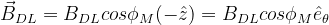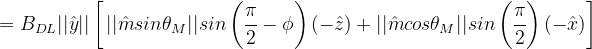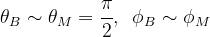 This can be computed, by once again considering, $\theta_{B} \sim \theta_{M} = \cfrac{\pi}{2}, \; \phi_{B} \sim \phi_{M})$, as follows