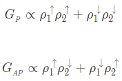 이때 $ P_{i} \equiv \left[D_{i \uparrow} (E_{F}) - D_{i \downarrow} (E_{F})\right]/\left[D_{i \uparrow} (E_{F}) + D_{i \downarrow} (E_{F})\right] $이다.