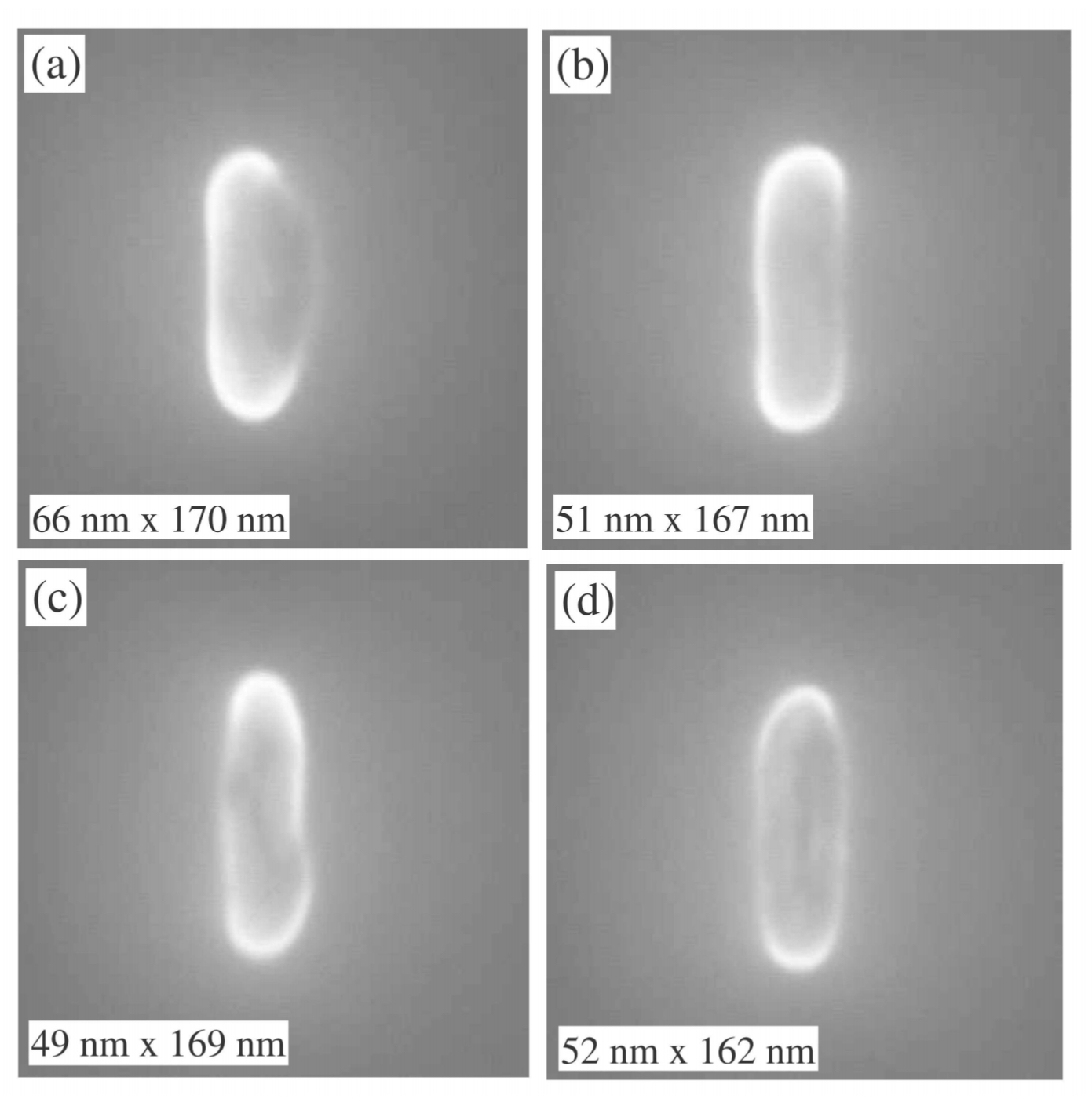 저자는 HSQ/PMMA bilayer를 사용했을때 얻어질 수 있는 가장 작은 패턴의 한계를 찾고자 했으며, 이 결과를 통해 HSQ/PMMA 나노마스크는 aspect ratio를 최소 1:3 (40nmx140nm)으로 가질 수 있음을 보였다. 여기서 6% HSQ 뿐만 아니라 2% HSQ도 시도했는데, 6%보다 더 낮은 lift-off yield를 얻을 수 있었다. (-> Not applicable for the lift-off nanopillar process)