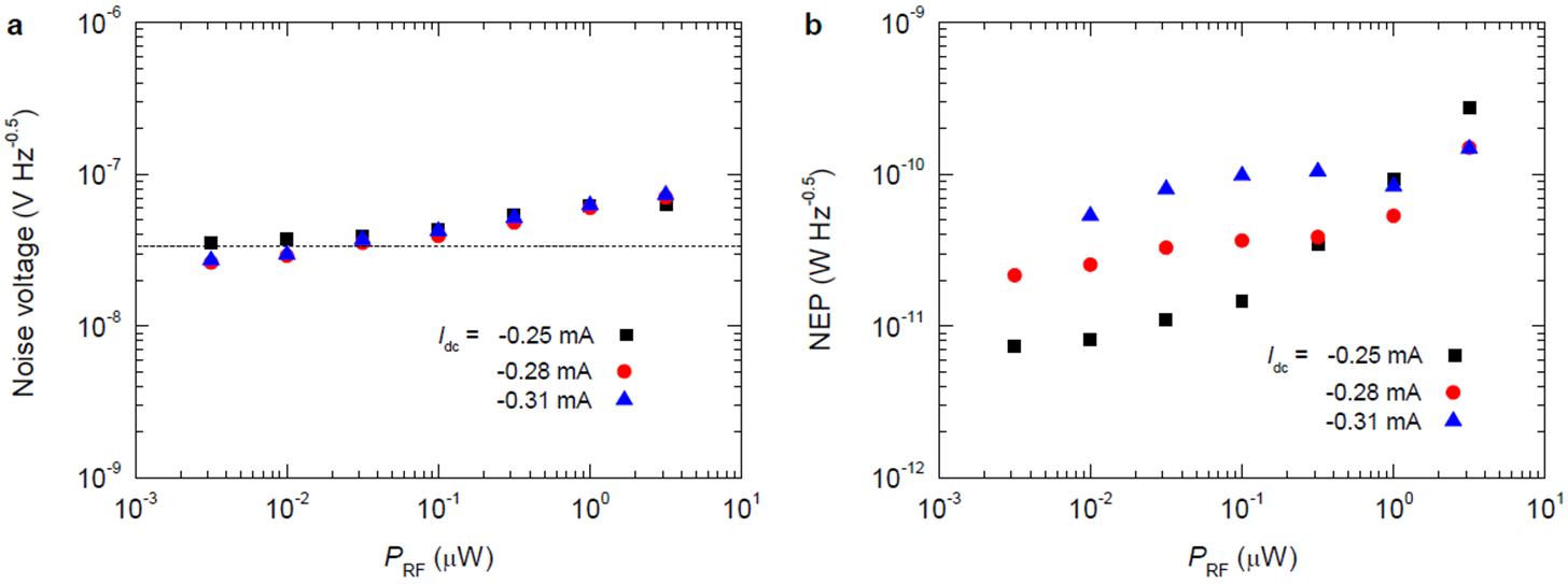 Under zero DC bias, the maximum RF detection sensitivity is about 2,800 mV/mW when the