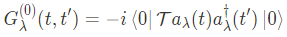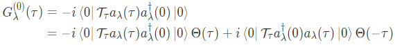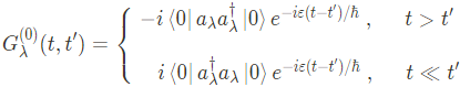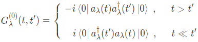 Green's function $G_\lambda^{(0)}$을 얻는 또 다른 방법은, $G_\lambda^{(0)}(t,t')$의 equation of motion을고려함으로써 얻을 수 있다. 시간에 대해 homogeneous인 시스템을 고려해보자, $\tau \equiv t-t'$라 정의하면, 위의 식은 아래와 같이 쓸 수 있다.