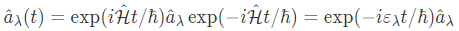 여기서 $|0\rangle$은 vacuum state이며, $a_\lambda^\dagger(t)$, $a_\lambda(t)$는 Heisenberg picture에서의 creation, annihilation operator이다.