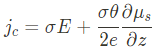 여기서 $P_{1}$과 $P_{2}$는 각각 두 강자성체 전극의 스핀 분극 값을 나타낸다. 스핀 분극 P는 spin-up과 spin-down 전자의 Fermi level에서의 density of states $N_{S}$와 연관되며 다음과 같이 나타낼 수 있다.