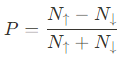 $P = \cfrac{N_{\uparrow}-N_{\downarrow}}{N_{\uparrow}+N_{\downarrow}}$