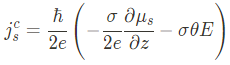 Let's limit our attention to only the nonmagnetic metal, this dissipation of electron spin current into the magnet can be interpreted as a small effective spin current in the metal.