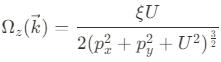 여기서 $\vec{B}(\vec{p})=(p_x,\xi p_y, 0)$는 ($K\;(K')$) valley 속 Dirac carrier에 대한 low energy Hamiltonian 에서의 effective pseudospin field 이며 $U(-U)$는 A(B) sublattice에서의 electrostatic energy이다. 그러므로, Berry curvature는 아래와 같이 유도된다는 것을 예측할 수 있다.
