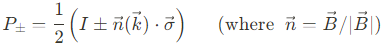 여기서 $\epsilon_\pm$과 $P_\pm$은 각각 아래와 같다.