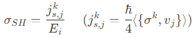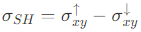 앞에서 우리는 스핀 방향에 의존하는 Hall-like separation 현상에 대해 기술했다. 이를 아래에서 공식화해보고자 한다. 우리는 전기장 $vec{E}_i$가 가해져 spin $s^{k}$가 전기장과 수직한 $\hat{j}$ 방향으로 흐르는 상황을 고려하고자 한다. Spin-Hall effect (SHE)에서는 $\hat{i}$, $\hat{j}$, $\hat{k}$ 가 상호 수직적인 관계를 가진다. 그러므로, 앞에서 기술했던 spin-dependent force $F_j= -\cfrac{2\alpha^2 m^2 v_i}{\hbar^3}\sigma^k$는 SHE의 한 예로 볼 수 있다. SHE의 세기는 spin-Hall conductivity(SHC)에 의해 정의되는데, 이는 수직한 스핀류 $j_{s,j}^{k}$를 전기장으로 나눠 아래와 같이 수식화 한다.