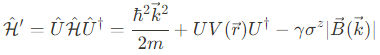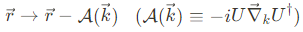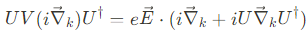 위에서 포텐셜 에너지 항은 nontrivially transform 하는데, 이는 $\vec{r}=i\partial_k$은 $\vec{k}$-space derivatives를 나타내고, U는 $\vec{k}$의 함수이기 때문이다. 전기장에 의한 potential energy를 고려하면,