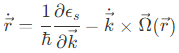 앞 장에서, 우리는 $\vec{r}$-space Berry curvature가 spin eigenstate-dependent Lorentz force를 이끌어 냄을 보였다. 여기서는, $\vec{k}$-space curvature 의 물리적 효과에 대해 기술하고자 한다. 증명 없이, Sundaram과 Niu에 의해 유도된 결과를 통해 이를 설명하겠다. 해당 유도에서는 $\vec{\Omega}(\vec{k})$가 존재할 때 wave packet의 준고전적 운동 방정식을 아래와 같이 기술한다.