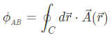 하지만, �→자체도 phase로서 나타나질 수 있다. 이를 Aharonov-Bohm phase라 하며, 아래와 같이 나타낸다. 여기서 �는 real space에서의 closed loop이다.