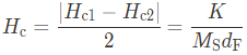 이 bias field는 Zeeman energy와 interlayer exchange energy 사이의 결쟁으로 정의되는데, 그러므로 강자성체의 두께 $d_\mathrm{F}$에 따라 값이 달라짐을 알 수 있다. Coercive field $H_{\mathrm{c}}$은 아래와 같이 주어지며, anisotropy constant $K$에 비례함을 알 수 있다.