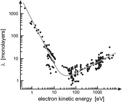 강자성체 박막 내에서 움직이는 전자의 감소하는 세기 $I$는 운도에너지에 의존한다. 이 함수는 물질과 거의 독립적이며, 그러므로 어느 물질에서나 동일한 경향성을 가진다. Inelastic mean free path $\lambda$는 아래와 같이 주어진다.