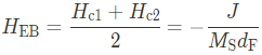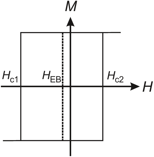 Shift의 정도는 interlayer excahgne와 연관된 effective field와 같다. Hysteresis loop은 anisotropy가 강자성체에 포함 될 때 나타난다. Coercive fields $H_{\mathrm{c1}}$, $H_{\mathrm{c2}}$는 단위 면적당 에너지의 stability를 계산함으로써 얻을 수 있으며, 이때 식은 아래와 같다.