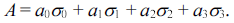 2×2 행렬은 4개의 성분을 가지므로, 임의의 2 × 2 행렬 A는 아래와 같이 4개의 행렬의 선형 결합으로 표현될 수 있다.