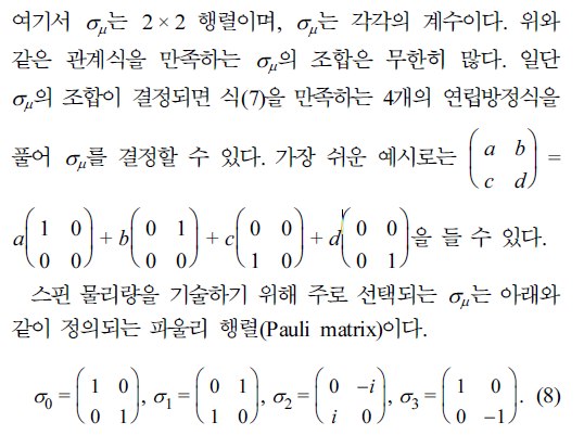 후술하는 문단에서는 2 × 2 행렬로 기술되는 물리량이 어떻게 3차원 스핀 정보를 주는지 살펴보도록 하겠다.