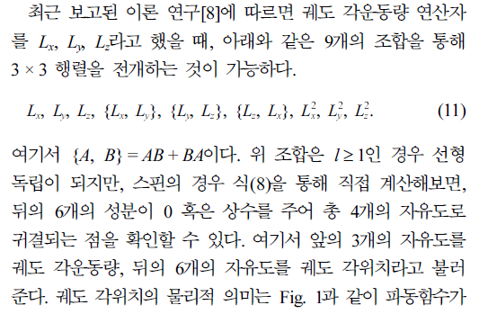궤도 각운동량 자유도에는 스핀 각운동량에는 없는 궤도 각위치(orbital angular position) 이라는 자유도가 존재하여 스핀 각운동량과의 정성적인 차이점을 찾는 것이 가능해졌다.