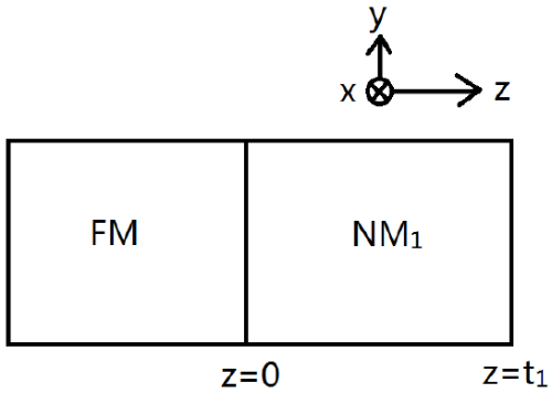 Fig.1.3에서 알 수 있듯이 두개의 boundary condition $z=0$(NM/FM interface), $z=t_1$을 고려하면,