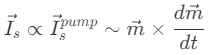 전형적인 spin pumping 실험(Fig.2.2.에 묘사된 것처럼)에서는, magnetization $\vec{m}$은 외부 자기장에 의해 excitation된다. resonance 조건에서, $\vec{m}$은 유효 자기장을 중심으로 세차운동을 하게된다. 결과적으로, 스핀류 $I_s^{pump}$가 FM으로 부터 펌핑되어 나온다.