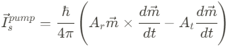 위 방정식에서, $\vec{m}$은 LLG 방정식을 따르는 자화의 dynamic vector이며, spin pumping conductance $A=A_r+iA_t$는 spin mixing conductance와 같은 역할을 한다. (만약 FM이 충분히 두꺼운 경우, $A=g^{\uparrow \downarrow}$.