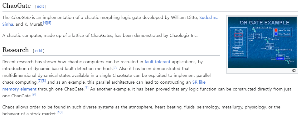 Chaos computing may also lead to dynamic architecture, where the hardware design itself evolves during the course of computation. (chaotic systems can be made to produce all types of logic gates and further allow them to be morphed into each other.)