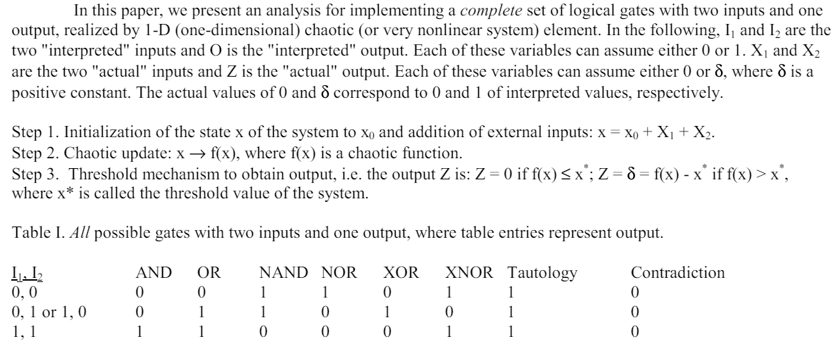 state가 x라는 값을 통해 represent 되는 chaotic element(chaotic chip, 또는 chaotic processor)를 고려해보자. 우리의 scheme에서, 모든 기본 logic gate operation은 아래의 step들을 포함한다.