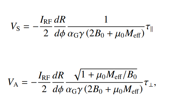 일반적인 (높은 대칭성을 가지는) 물질에서는, $\cos \phi$ 의존성을 가지며, 이 신호에 더해 Py의 AMR이 $\cos ^2 \phi$의 신호로서 $V_{mix}$에 $\sin 2\phi$만큼 더 작용한다. 이 두 신호의 곱은 아래와 같은 angular dependence를 만들어낸다.