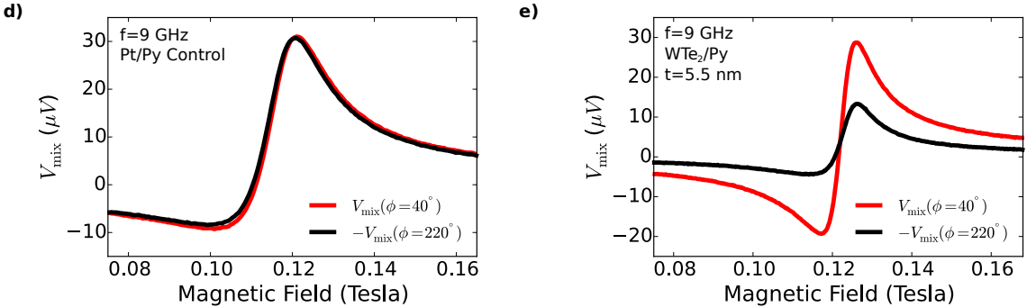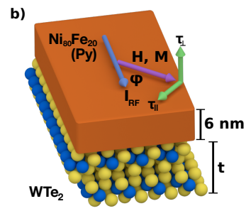 위에서 보는 것과 같이, $WTe_2$에서 non-zero symmetric component는 S-O torque가 $WTe_2$/$Py$ bilayer에 존재함을 나타낸다. 이는 symmetric component가 in-plane torque과 연관되며 Oersted field를 통해서는 만들어지지 않기 때문이다.